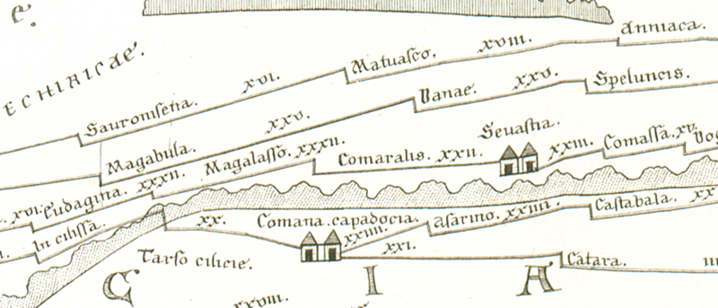 Comaralis war laut TP Station an der Straßenverbindung zwischen 9B2/3 Mazaca cesarea und 9B4 Seuastia (Sebasteia). |