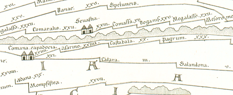 Nur auf der TP belegte Station in Kappadokien, laut TP 21 Meilen von Comana Cappadociae entfernt auf einer Straße, die in Richtung OSO nach Samosata führte. |
