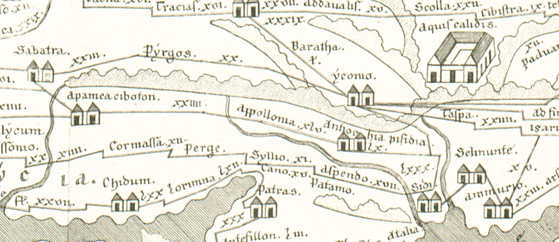 | Ravennat: | Antiochia lisidias (p. 30.6), Antiochia Pisidie (p. 30.36) |