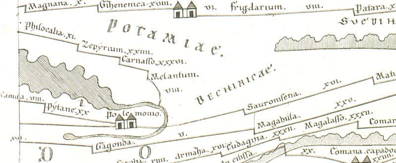 Begründung zur Datierung: | Ort am gleichnamigen Fluss nur auf der gemeinsamen Vorlage von TP und Rav greifbar. (Erste Erwähnung des Flusses bei Plin.). |